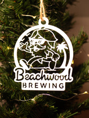 Deck the halls, Beachwood-style! This custom 4-inch cutout ornament features our laid-back Beachwood hop character, complete with shades and beachy vibes, framed in a clean circular silhouette. Precision-cut from durable lightweight plastic, it catches holiday lights beautifully while staying sturdy enough for seasons to come.