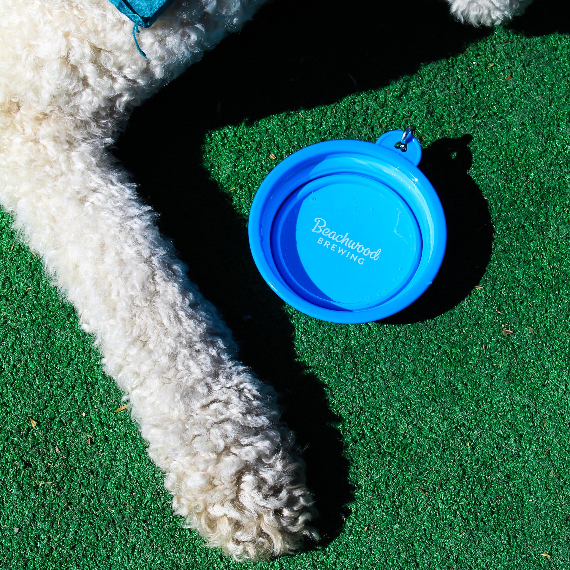 Collapsible Beachwood Dog Bowl. Perfect for helping your furry friend stay hydrated on the go!