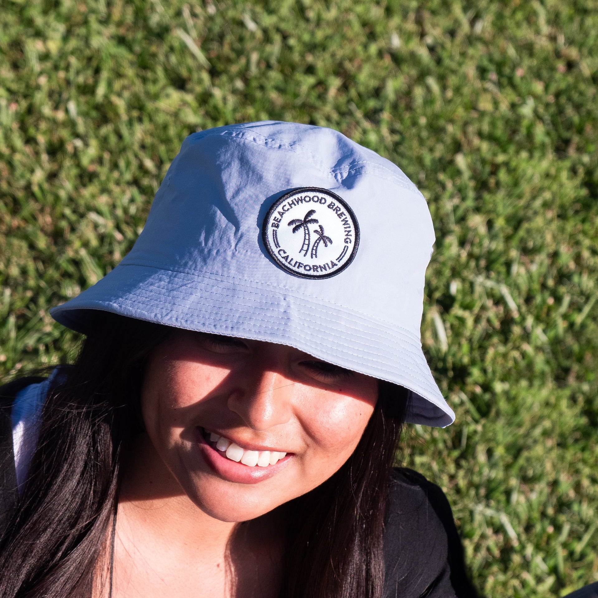 100% recycled nylon Bucket Hat with Beachwood Brewing Patch in Powder. One size fits most.