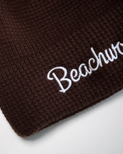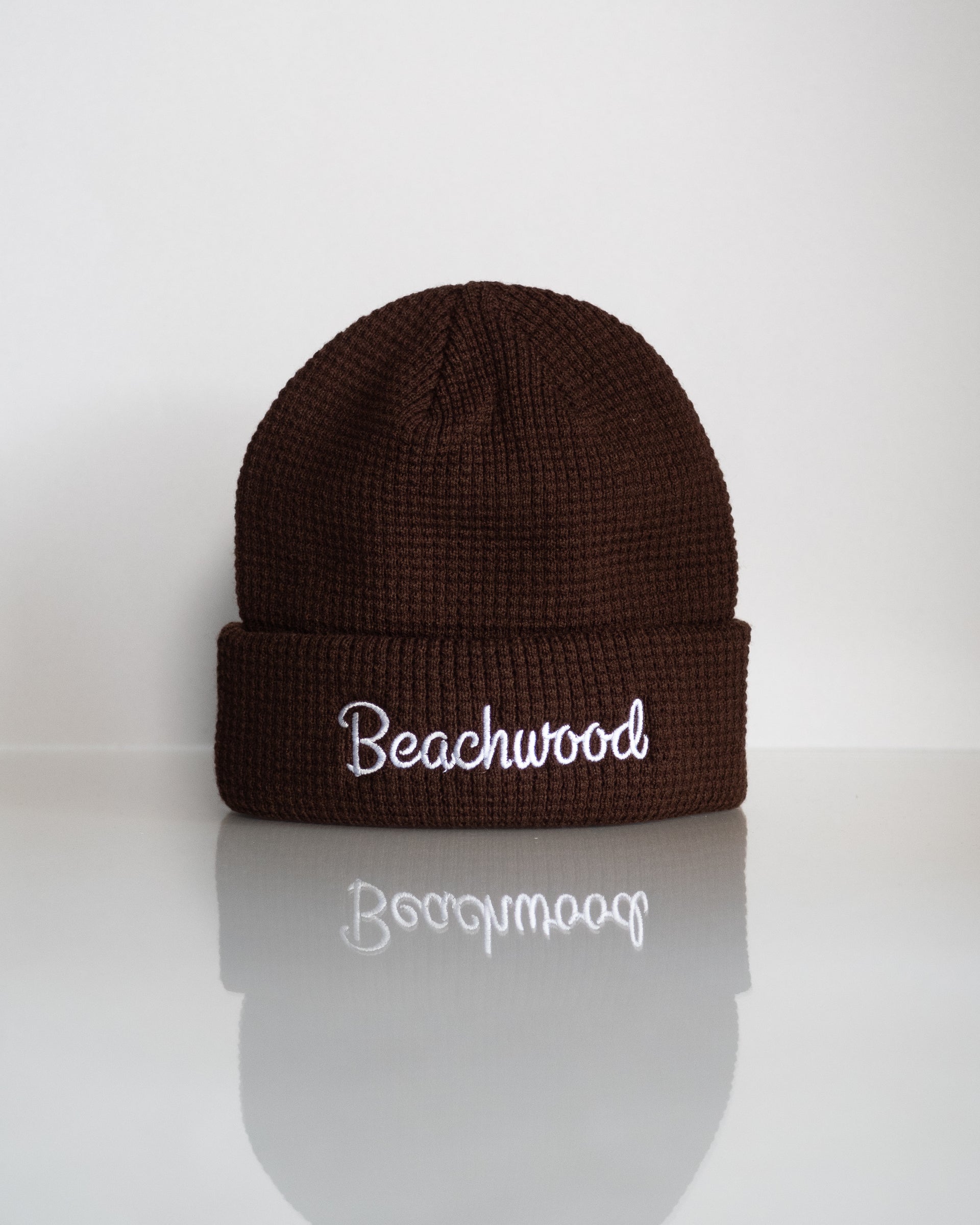 Stay cozy with our classic "Beachwood" stitched beanie in Brown—your new go-to for everyday warmth and laid-back California style. This waffle-knit beanie features a soft, durable 100% acrylic construction and a comfortable pull-on fit that works for all-day wear. One size fits most.