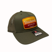 6 Panel Mid-Profile Structured Hat in Olive Green with Olive Green mesh back. Features a snapback closure. Poly/Cotton Blend.